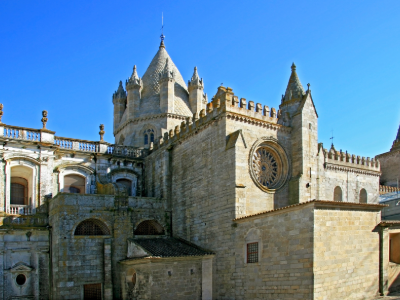 A Sé de Évora conhecida também por Catedral é uma construção dos séculos XII-XIII e é o primeiro monumento onde se verifica a transição do estilo românico para o gótico. A entrada principal está decorada com esculturas representando os apóstolos, o interior data do século XVII e XVIII. Neste templo está instalado o Museu de Arte Sacra onde estão depositados esculturas, joalharia, e mobiliário religioso de grande valor. Conta a história que aqui foram benzidas as bandeiras da frota de Vasco da Gama em 1497.